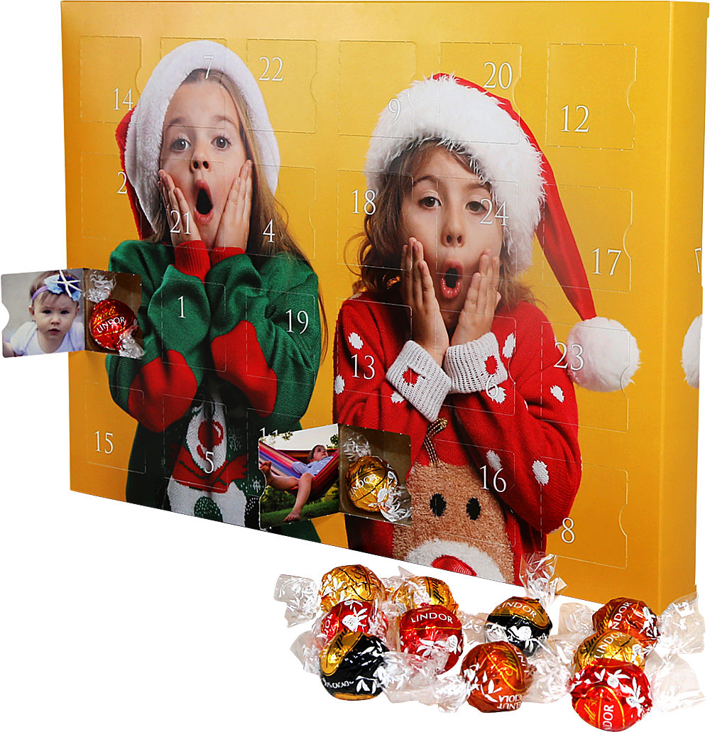 Ganz einfach: Erstellen Sie Ihren Kalender mit einem Titelfoto oder mit zusätzlichen 24 Türchenbildern.